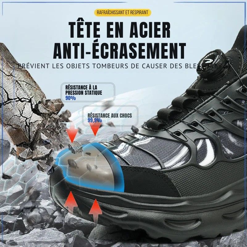 Basket Chaussures Sécurité Anti-écrasement avec Bouton Rotatif