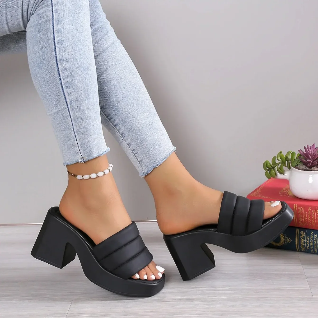 Que ce soit pour se détendre à la maison ou pour une visite improvisée, ces pantoufles sont idéales. Elles allient élégance et style décontracté, vous permettant de vous sentir à l’aise et séduisante.