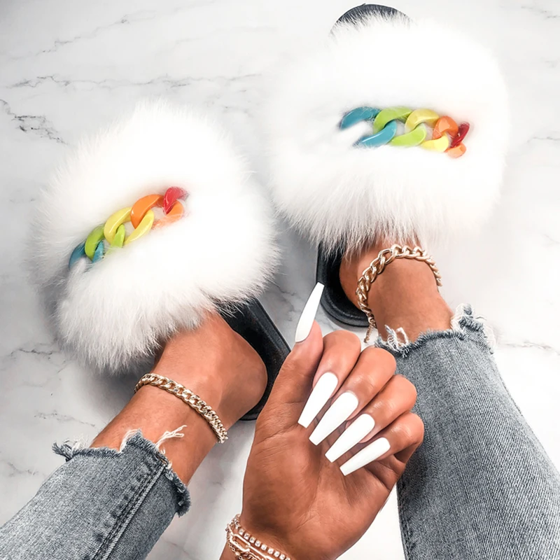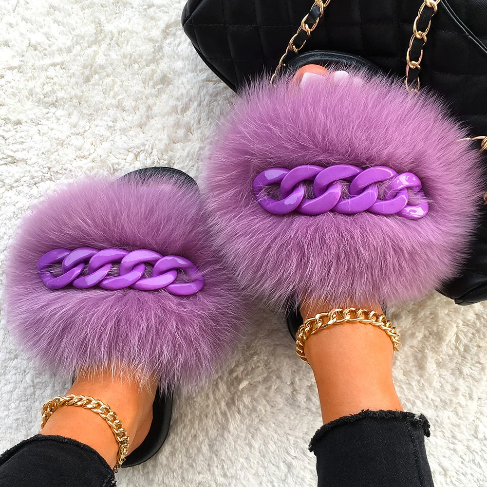 Le Pantoufle En Peluche Avec Chaîne Brillante D’été de vos rêves