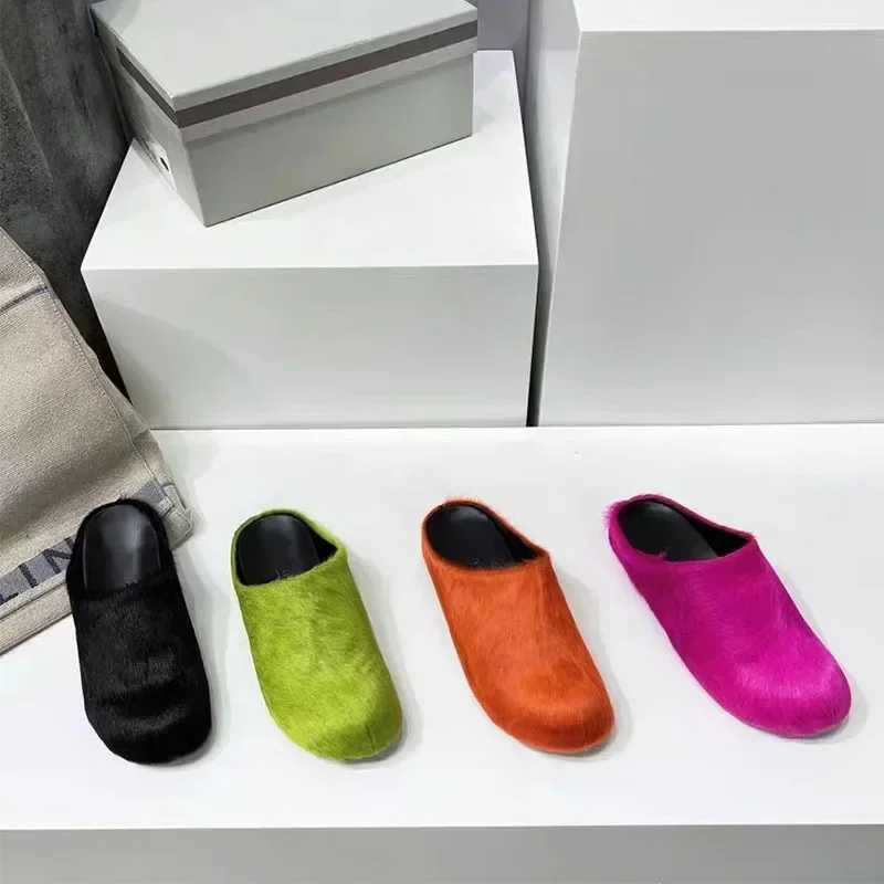 Pantoufles Femme Crin De Cheval De Luxe En Cuir