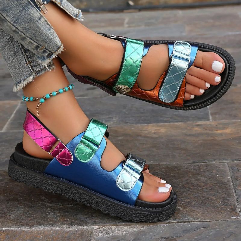 Avec un ajustement parfait fourni par les fermetures à boucles, ces sandales vous offrent la sensation d’un véritable sur-mesure. La mode estivale n’a jamais été aussi accessible, mariant la beauté des couleurs à la praticité du confort.